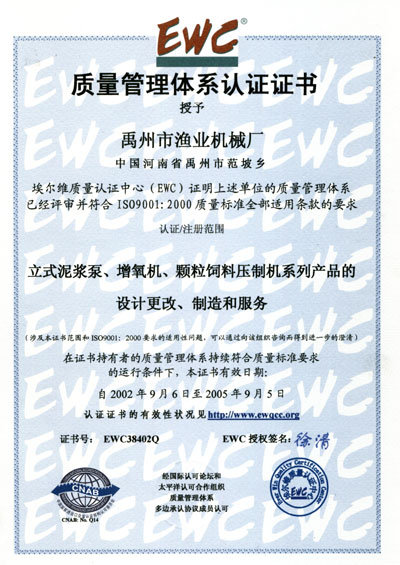 ----幾年來,我廠本著靠科技求發(fā)展,靠信息求市場,靠質(zhì)量求生存,靠管理求效益的治廠方略,大膽進行改革,建立起一套全新的運行機制。2002年9月已通過ISO9001:2000國際質(zhì)量管理體系認證;在2000年12月榮獲河南省科學(xué)技術(shù)廳“科技企業(yè)證書“;2001年7月獲河南省科學(xué)技術(shù)廳“高新技術(shù)產(chǎn)品證書“;2001年12月獲河南省科學(xué)技術(shù)廳“高新技術(shù)企業(yè)認定證書“;曾獲河南省鄉(xiāng)鎮(zhèn)企業(yè)名牌產(chǎn)品稱號。